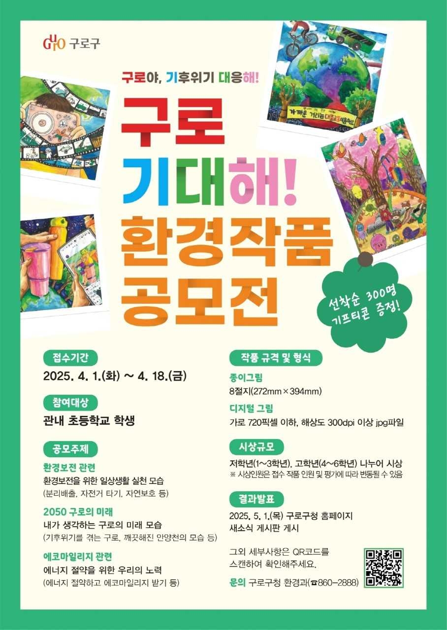 구로구 관계자는 “이번 공모전은 학생들이 환경에 대한 사랑과 관심을 마음껏 표현할 수 있는 기회”라며 “학생들이 그려낸 창의적인 작품들을 통해 환경을 소중히 여기고, 함께 지켜나가길 바란다”고 말했다.