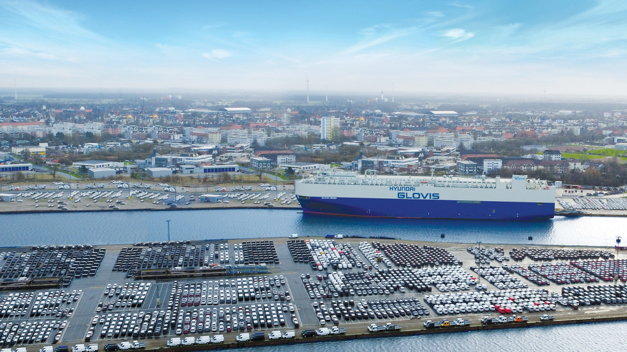 | 현대글로비스 운반선이 차량 적재 작업을 위해 정박하고 있다. [현대글로비스 제공] |