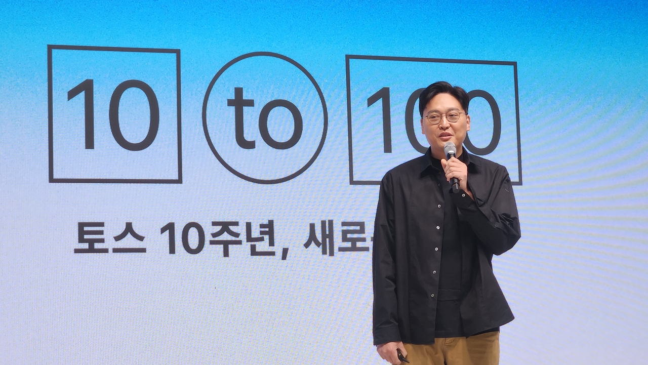 | 지난달 성수동에서 열린 토스앱 10주년 기념 행사장 ‘스퀘어 오브 토스’에서 이승건 비바리퍼블리카 대표가 발표를 하고 있다 [정호원 기자] |