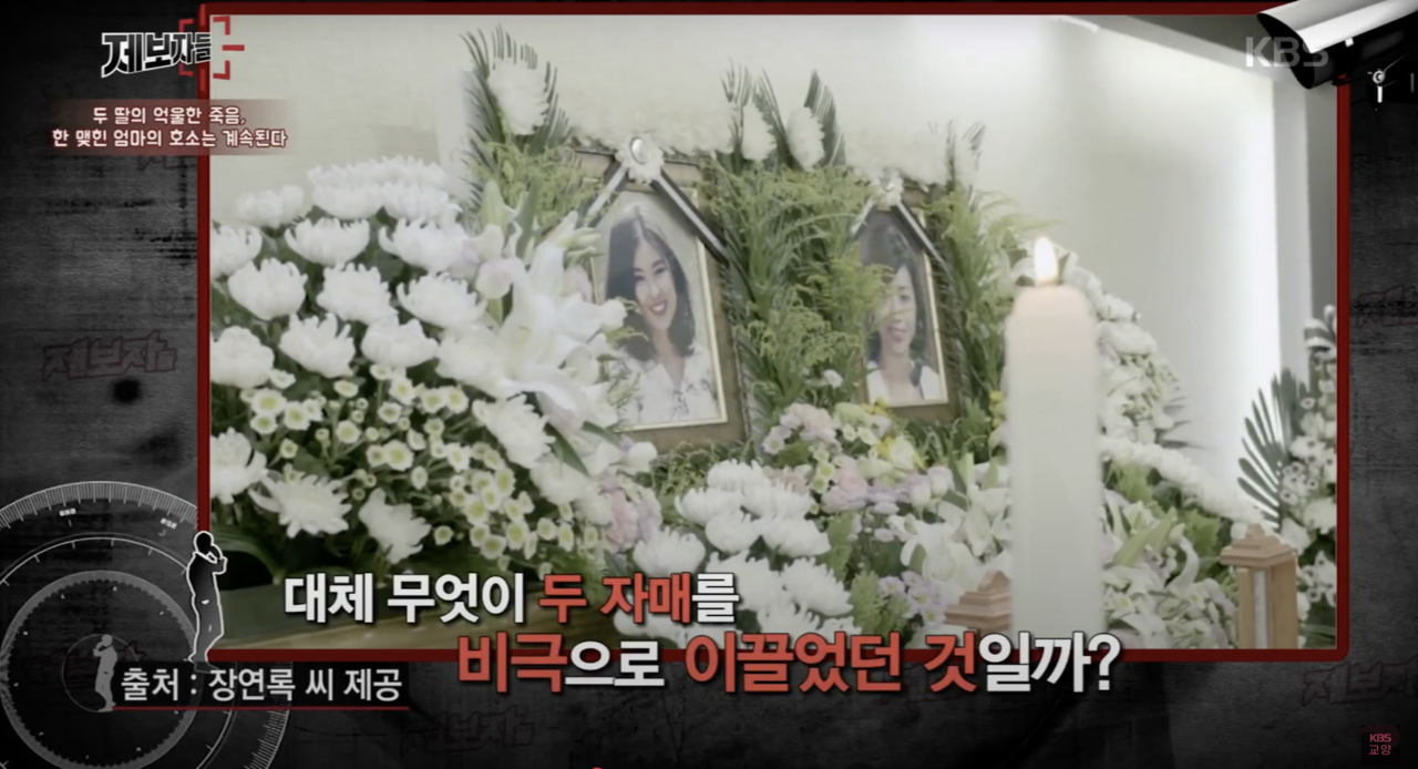 | 단역배우 자매 사망 사건의 피해자들 빈소 모습 [유튜브 ‘KBS 교양’] |
