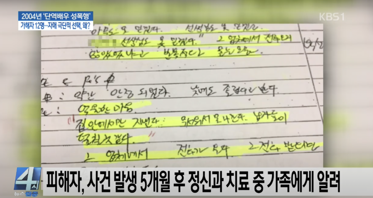 | 피해자가 생전에 남긴 일기 [유튜브 ‘KBS뉴스’] |