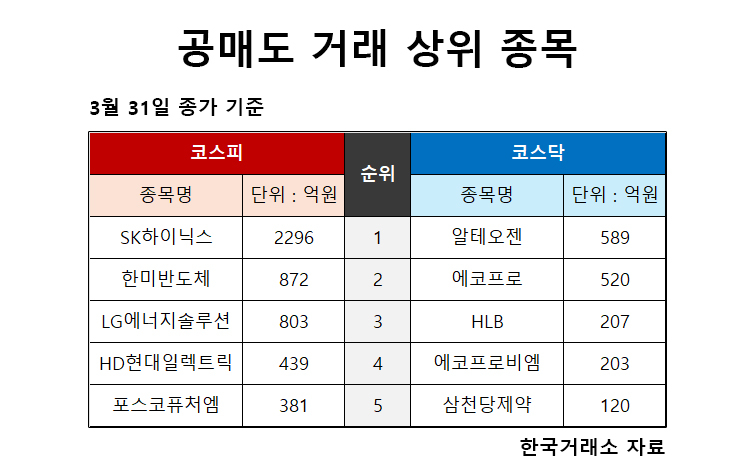 전날 기준 코스피·코스닥 시장 내 공매도 거래 상위 종목들의 주가엔 강한 하방 압력이 작용한 것으로 나타나면서다.