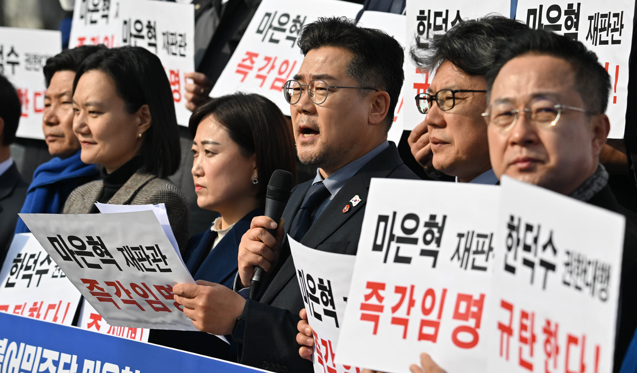 이어 “헌재가 마은혁 재판관 미임명이 위헌이라고 만장일치 결정을 내린 지 오늘로 34일째, 한 총리가 권한대행에 복귀한 지도 벌써 9일째”라며 “그러나 한 총리는 마은혁 재판관을 임명하지 않았다”고 지적했다.