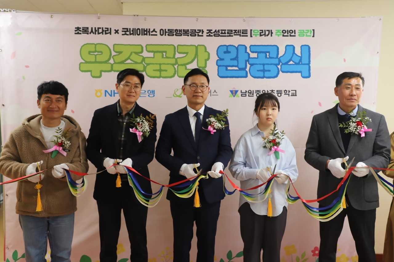 농협은행은 지난달 31일 전북 남원시 소재 남원중앙초등학교에서 농촌 아동의 삶의 질 개선을 위한 사회공헌 사업 ‘초록사다리×우주공간’ 프로젝트의 2호 완공식을 진행했다. 지난해 NH농협은행은 글로벌 아동권리 전문 NGO 굿네이버스와 업무협약을 체결하면서 해당 프로젝트를 진행하고 있다.
