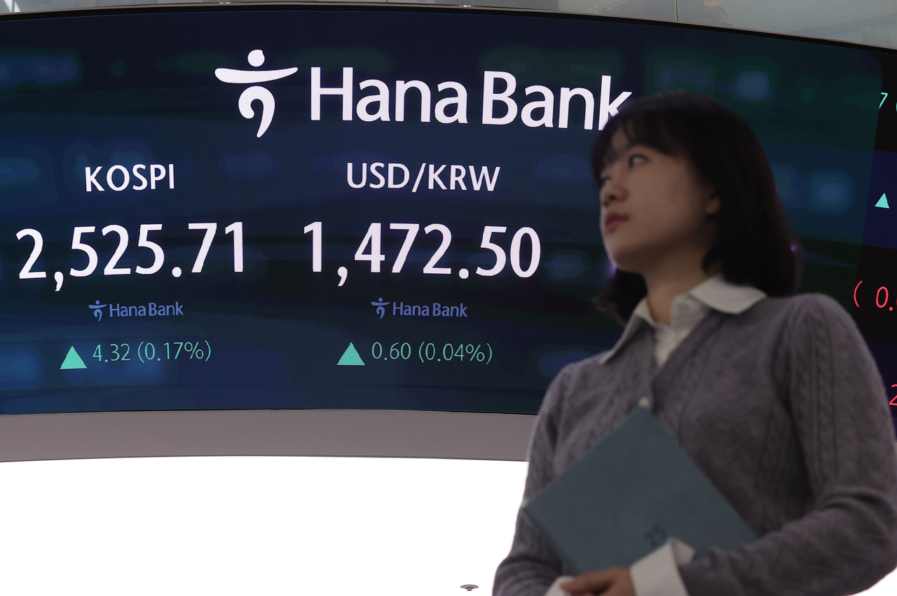 | 2일 오전 서울 중구 하나은행 본점 딜링룸에서 딜러가 업무를 보고 있다. 이날 코스피는 전날보다 4.23p(0.17%) 오른 2,525.62으로 시작했다. 원/달러 환율은 0.4원 내린 1471.5원으로, 코스닥은 3.92p(0.57%) 오른 695.37로 개장했다. [연합] |