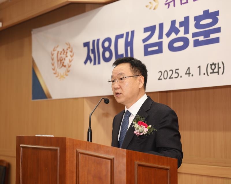 | 김성훈 인천환경공단 제8대 이사장이 지난 1일 열린 취임식에서 인사말을 하고 있다. |