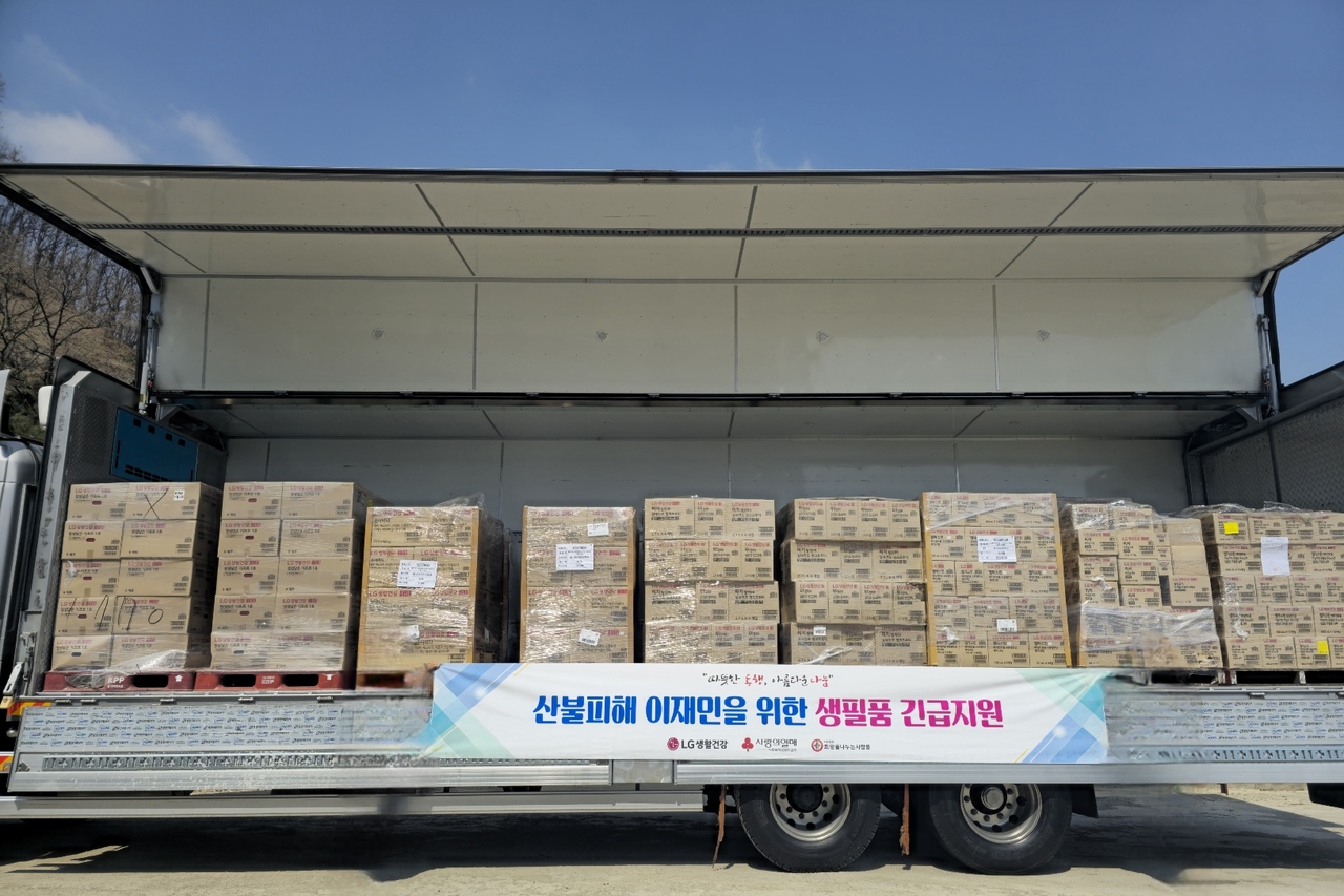 LG생활건강은 지난달 31일 ‘사랑의열매’와 ‘희망을나누는사람들’을 통해 경북 의성군과 영양군, 청송군, 경남 산청군 등 산불 피해가 큰 지역의 이재민에게 생활용품 2340박스를 전달했다.