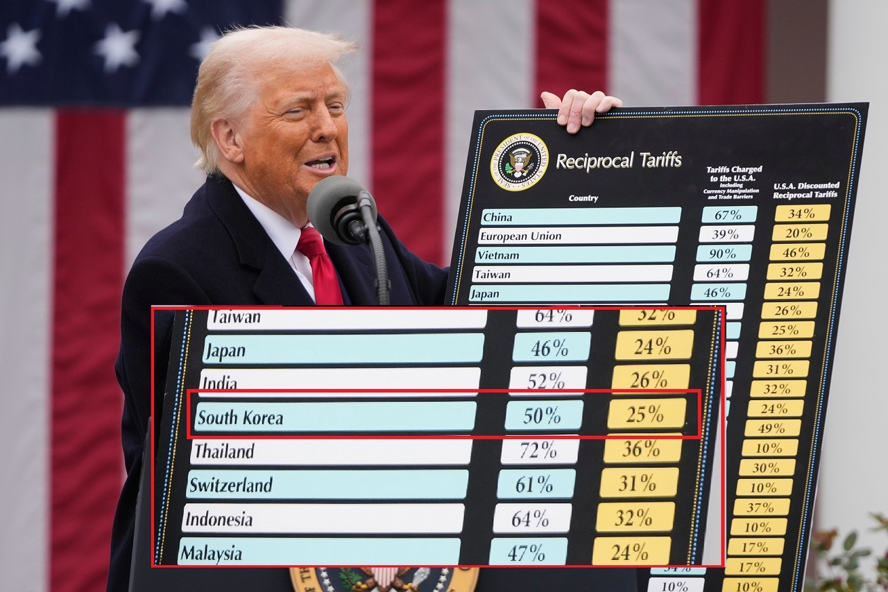 한국에 더해 중국, 일본, 유럽연합(EU), 대만 등 미국의 주요 무역상대국에는 기본관세 이상의 상호관세가 부과됐다.