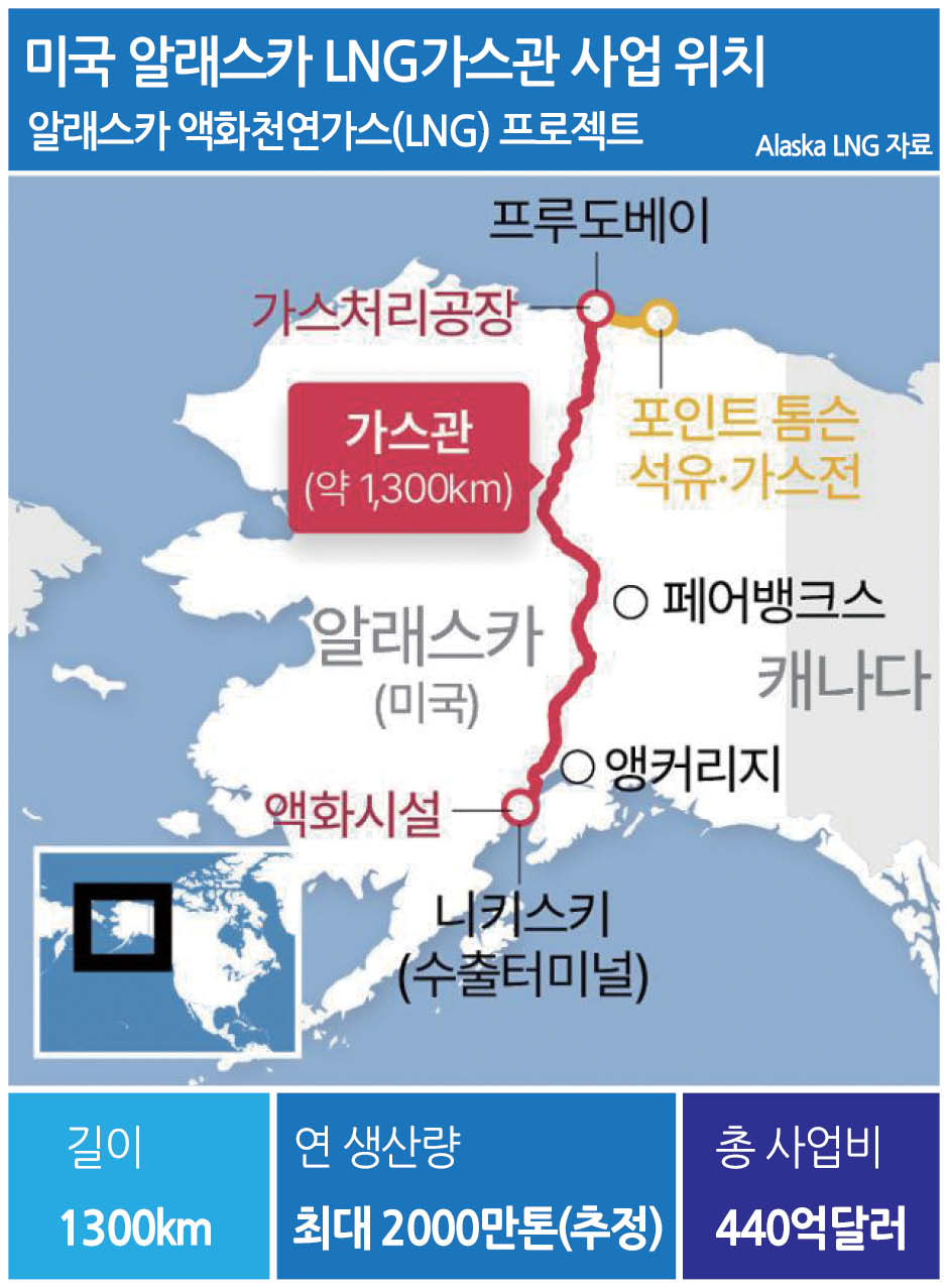 정치적 리더십의 공백기 속에서 미국과의 협상에 난항을 겪고 있는 우리에게 미국으로부터의 LNG 수입은 적절한 방안이다. 트럼프 대통령은 취임 후 첫 번째 연두교서에서 알래스카에서 세계 최대 규모의 거대한 천연 가스 파이프라인을 건설하고, 한국과 일본이 수조 달러를 투자할 것이라고 발언했다. 이는 40년 전 전두환 정부에서부터 미국이 요청한 사업으로 우리 정부가 수차례 거절한 프로젝트이다. 그래서 사업성을 두고 논란이 커지고 있다. 미 알래스카 북부 프루도베이 가스전에서 남부 니키스키까지 약 1,300㎞ 가스관 건설과 액화 터미널 구축을 포함하는 대형 LNG 개발사업(투자비, 450억-650억 달러)으로 LNG를 해외와 국내 시장에 공급하는 사업이다. 트럼프 대통령이 한국을 콕 집어 거론해 정부의 셈법도 복잡해진 상태로 정부는 프로젝트 관련 협의체를 구성하고 투자 가능성을 검토 중이다. 알래스카 남쪽까지 가스관을 1300㎞ 이상 끌고 내려와야 하고, 겨울철에는 땅이 얼어붙어 공사 진척이 지난한 사업이다. 일본 정치권에서는 알래스카 LNG 개발에 참여를 열어 놓고 있지만 민간 기업은 신중한 모습이다. 일본 정부의 관심 표명에 이어 대만이 지난달 알래스카 가스 개발 사업에 참여하겠다고 선언했다. 대만 국영 석유기업인 대만중유공사(CPC·台灣中油)는 지난달 20일 타이베이에서 미국 알래스카 가스라인 개발공사와 LNG 구매·투자의향서를 체결했다. 대만중유공사는 향후 개발될 알래스카 가스를 LNG 형태로 도입하고, 관련 개발 인프라 건설 과정에도 참여하는 방안을 검토하기로 했다.