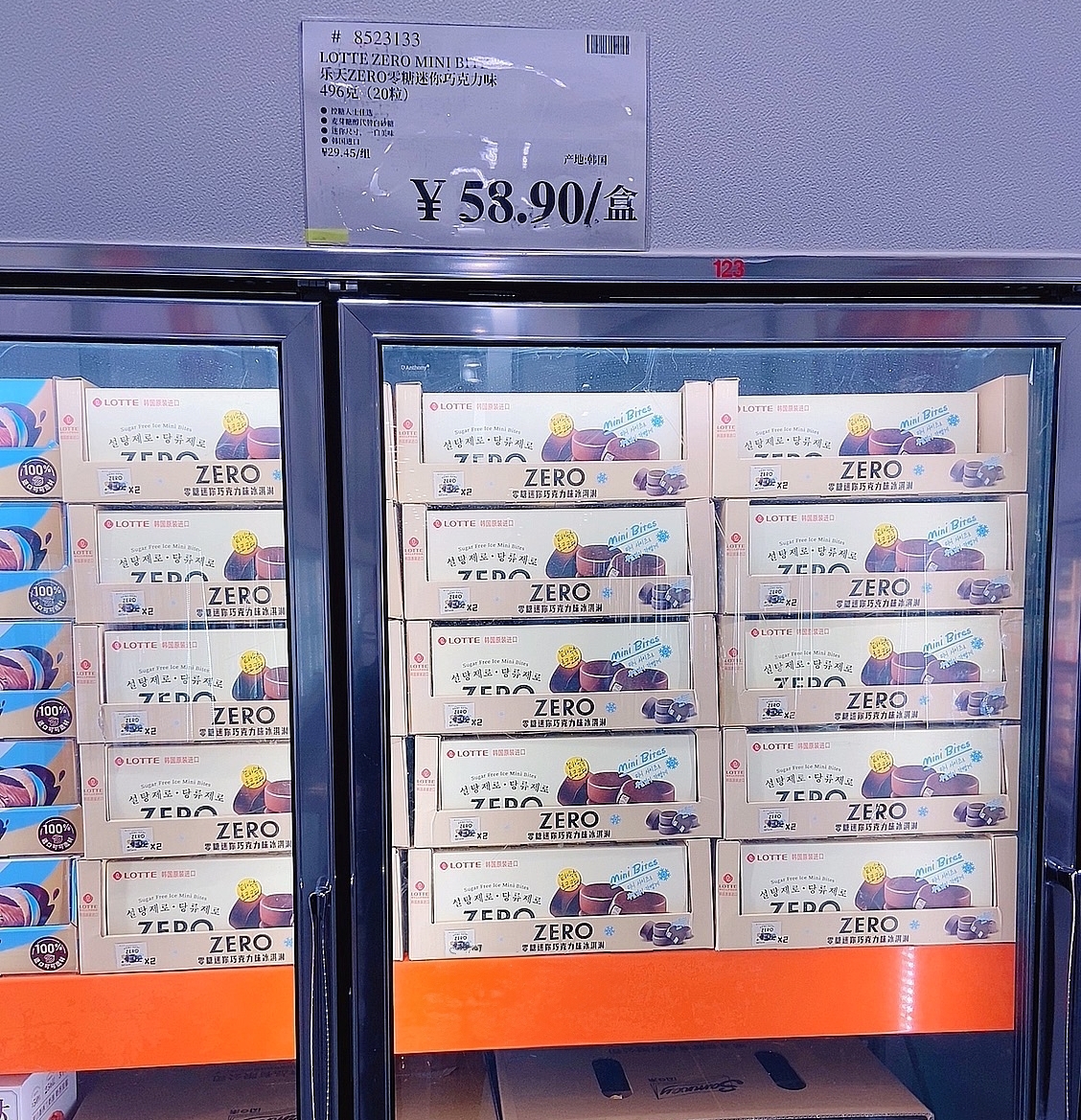 | 중국 코스트코에 진열된 ‘제로 미니바이트 밀크&초코’ [롯데웰푸드 제공] |