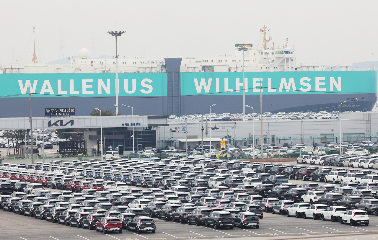 | 지난 9일 경기도 평택항에서 수출 대기 중인 자동차들이 주차돼 있다. [연합] |