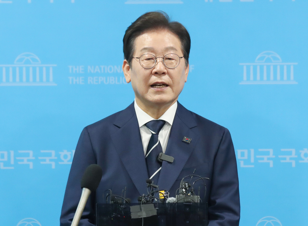 | 이재명 전 더불어민주당 대표가 11일 오전 서울 여의도 국회 소통관에서 ‘비전 선포식 및 캠프 인선 발표’ 기자회견을 마치고 백브리핑을 하고 있다. 이상섭 기자 |