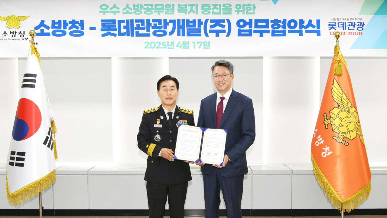 또 앞으로 롯데관광개발 여행 상품을 이용하는 소방공무원에게는 롯데관광개발의 골드 등급(최근 3년 이내 2회 이상 1000만 원 이상 구매 고객)과 동일한 혜택인 상시 3% 할인 혜택을 제공한다.