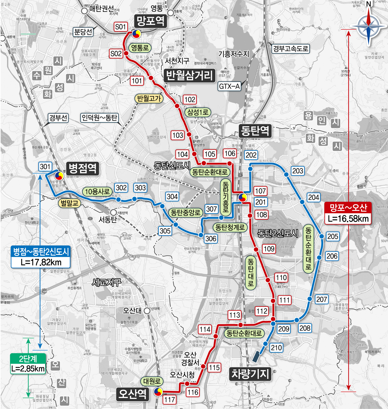 | 동탄트램 노선도. |