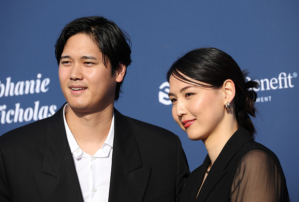 | 미국프로야구 메이저리그(MLB)의 슈퍼스타 오타니 쇼헤이(30·로스앤젤레스 다저스와 부인 다나카 마미코(28). [게티이미지] |