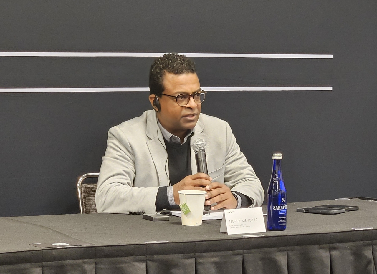 | 테드 멘지스테 제네시스 북미법인 COO가 지난 16일(현지시간) 미국 뉴욕 ‘제이콥 재비츠 컨벤션 센터’에서 열린 간담회에서 발언하고 있다. 뉴욕=서재근 기자 |