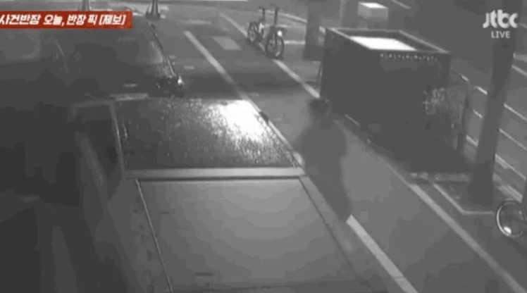 | 지난 15일 오전 2시께 서울 강남구 논현동에서 한 남성이 길가에 주차된 테슬라 사이버트럭에 발길질을 하는 모습이 폐쇄회로(CC)TV에 포착됐다. [JTBC ‘사건반장’ 갈무리] |