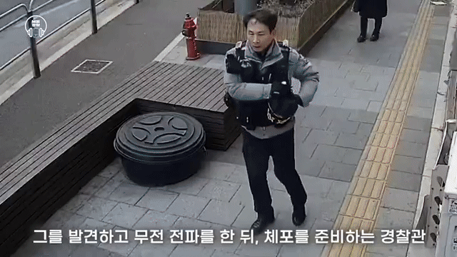 현장에 출동한 경찰관들은 3단봉을 꺼내 체포를 준비했다. 이어 흉기를 들고 있는 A씨의 손목을 가격해 칼을 떨어뜨리게 하고 제압했다.