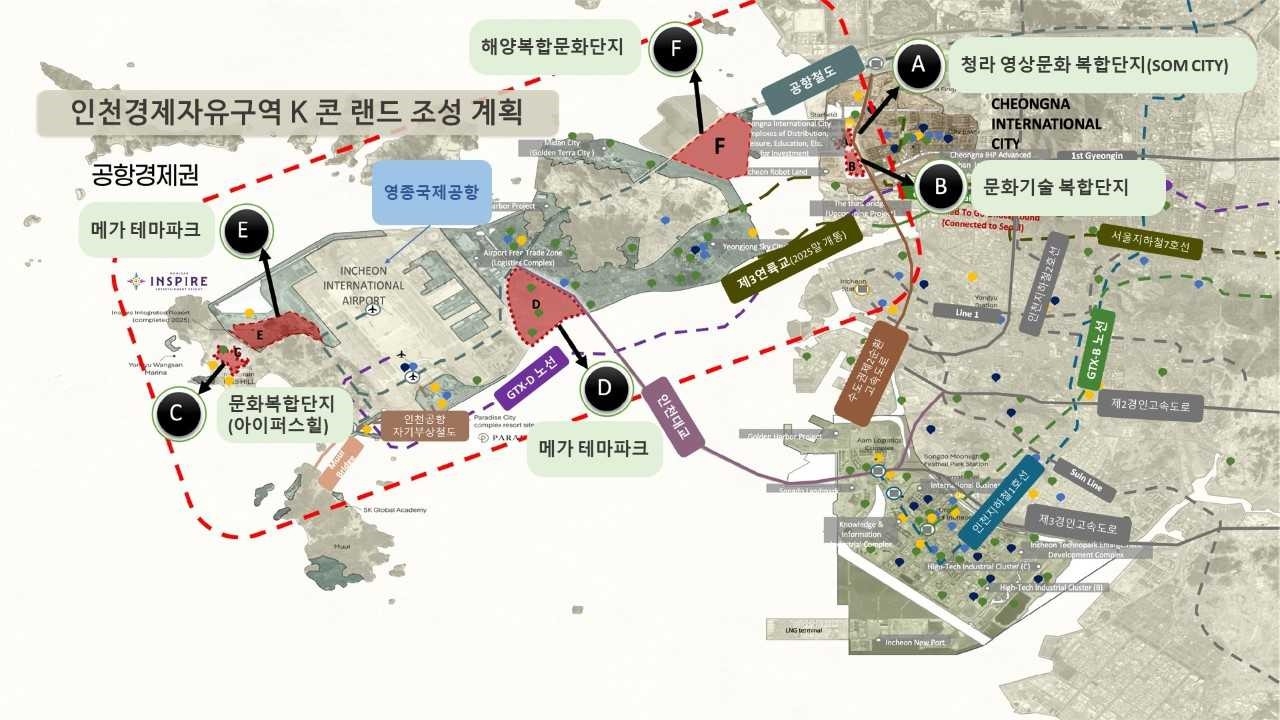 K-콘 랜드는 인천경제자유구역을 중심으로 영상문화 기업과 엔터테인먼트 산업을 직접해 영상·문화산업을 육성하고 문화예술 콘텐츠와 첨단 기술을 융합해 세계적인 관광지로 조성하는 프로젝트이다.