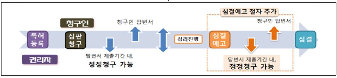 | < (심결예고 절차가 추가될 경우) 무효심판 절차 중 정정청구 흐름도(안) > |