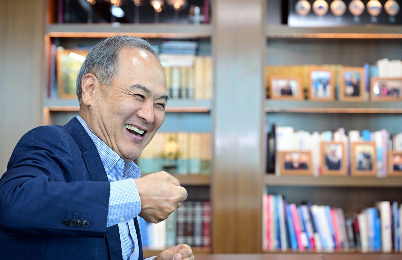 | 김성집 베이스그룹 회장이 16일 오후 서울 여의도 베이스그룹 집무실에서 헤럴드경제와 인터뷰를 하고 있다. 이상섭 기자 |