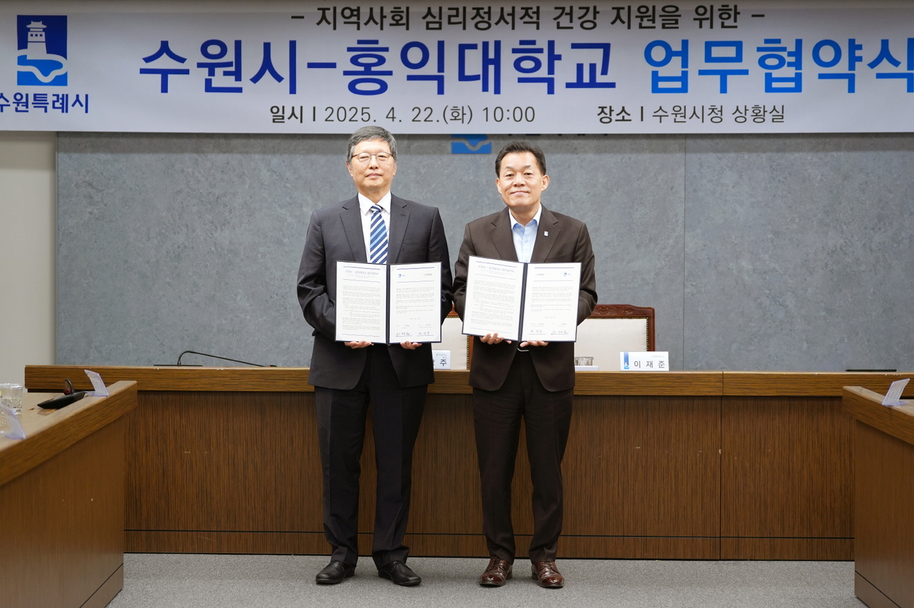수원시와 홍익대학교는 22일 시청 상황실에서 업무협약을 체결하고, 협력을 약속했다.