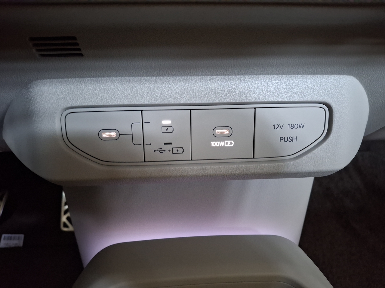 그러면서도 편의기능은 풍성하게 구성했다. 고속 충전이 가능한 100W C타입 USB 충전 단자(전용 케이블 제공)를 동급 최초로 적용했고, 빌트인 캠 2 플러스, 스티어링 휠 그립 감지, 헤드업 디스플레이 등 기능이 다양하게 들어간다. V2L(Vehicle to Load) 기능을 활용할 수 있는 220V 콘센트는 2열 가운데 자리에 들어가 1열과 2열 모두에서 활용이 쉽다.