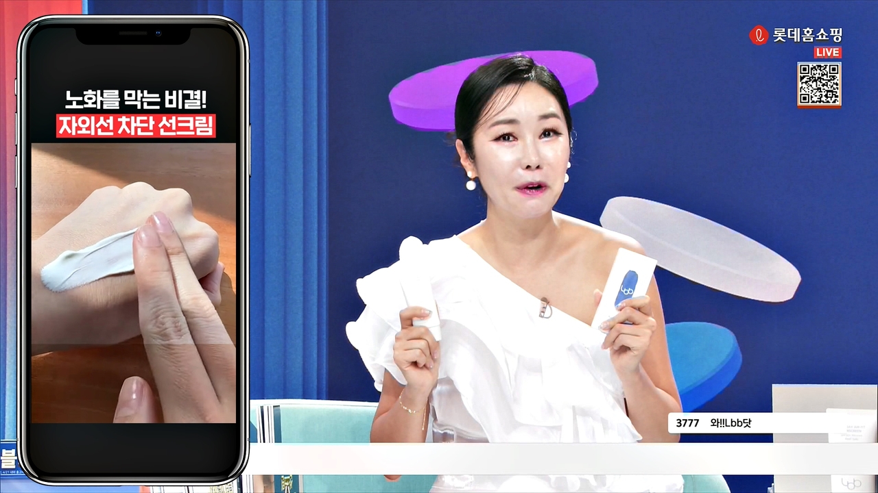 | 롯데홈쇼핑의 엘비비 선크림 멀티 채널 판매 방송 [롯데홈쇼핑 제공] |