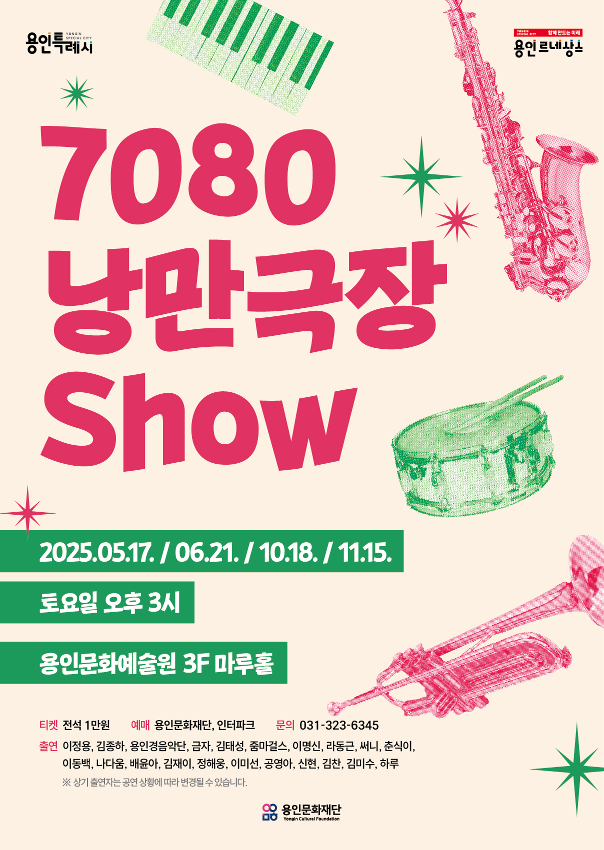 [헤럴드경제(용인)=박정규 기자]용인문화재단(이사장 이상일)은 오는 5월부터 11월까지 작년에 이어 실버 세대를 위한 공연, 2025년 ‘7080 낭만극장쇼’를 용인문화예술원 마루홀에서 개최한다.