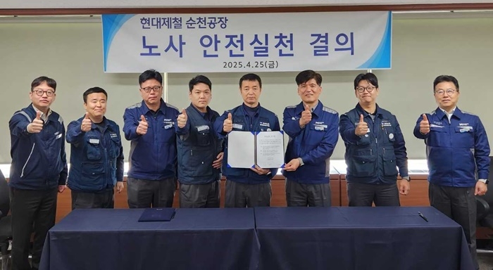 25일 현대제철 순천공장에서 진행된 ‘노사 안전실천 결의 활동’은 노사가 함께 안전사고를 예방하고 안전한 100년 영속 제철소를 구현하자는 목표로 마련됐다.
