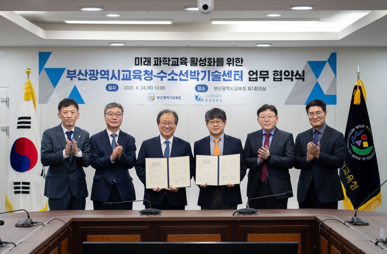 [헤럴드경제(부산)=조아서 기자] 부산시교육청은 지난 24일 시교육청 회의실에서 부산대 수소선박기술센터와 미래 과학교육 활성화를 위한 업무 협약을 체결했다고 25일 밝혔다.