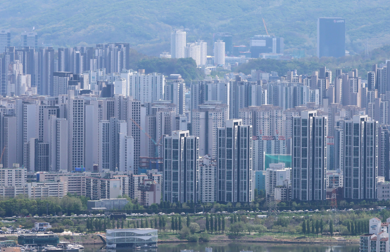 | 지난 23일 남산에서 바라본 서울 시내 아파트 단지. [연합] |