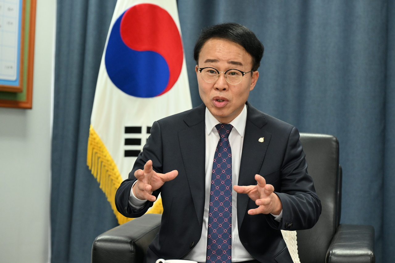 | 박성호 부산진해경제자유구역청장이 지난 25일 집무실에서 헤럴드경제와 인터뷰를 하고 있다. [부진경제구역청 제공] |