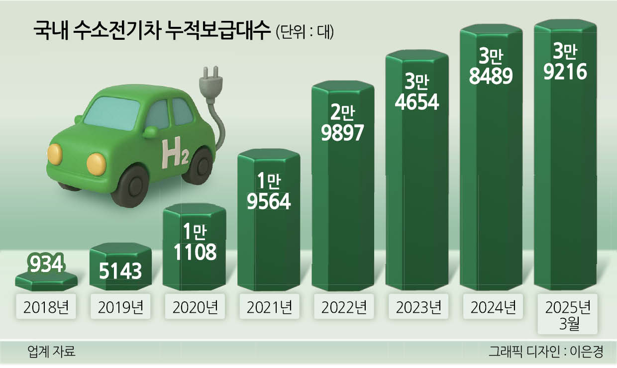 28일 업계에 따르면 국내 수소전기차 누적 보급대수는 3월 말 기준 3만9216대다. 올해 승용 수소전기차 신모델 출시와 함께 1만3000대 분의 정부 구매보조금이 확정된 점을 고려하면 이른 시일 내 5만대를 넘어설 것으로 전망된다.