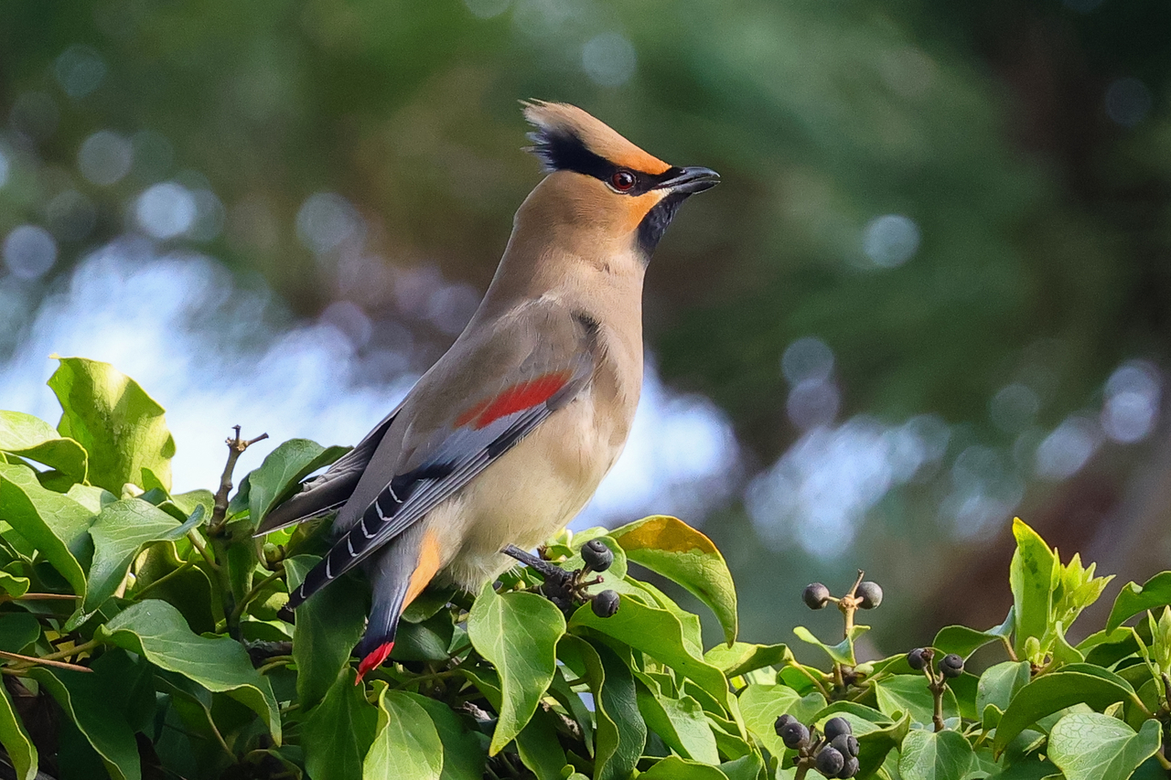 | 국제보호조 홍여새 200여 마리가 울산에 날아들었다. [윤기득 생태사진작가 제공] |