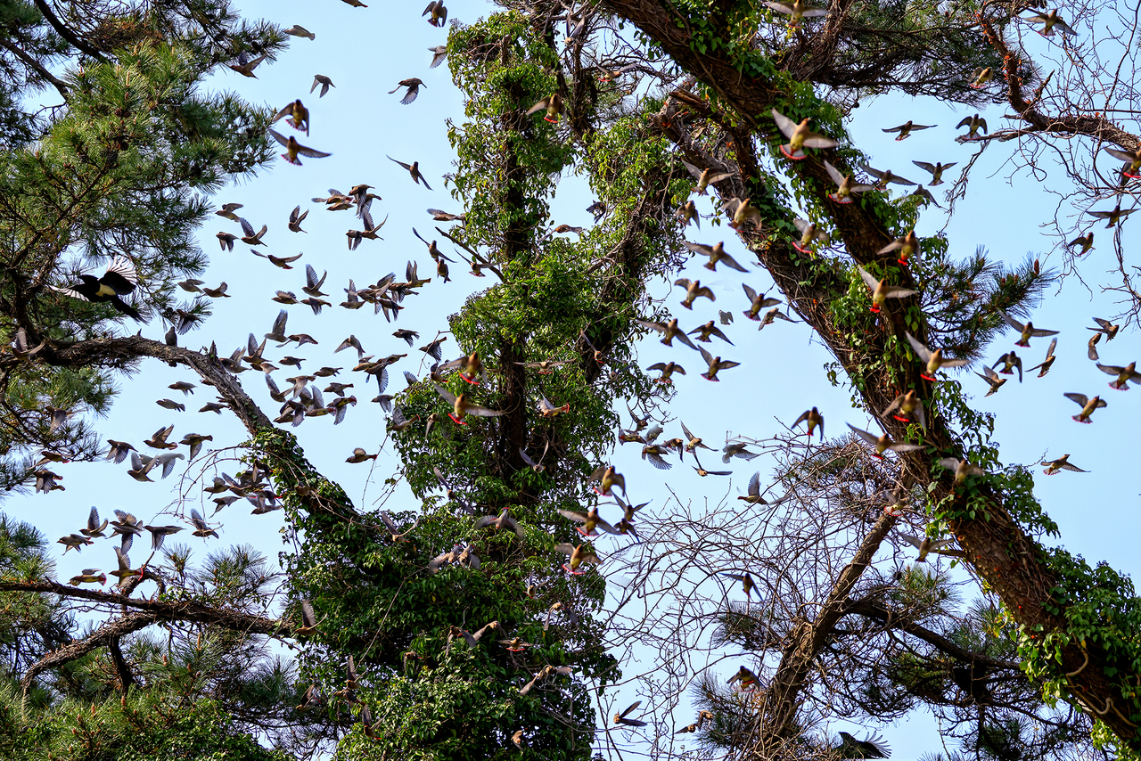 [헤럴드경제(울산)=박동순 기자] 세계자연보전연맹 준위협종(NT)인 국제보호조 ‘홍여새’ 200여 마리가 울산 울주군 청량읍과 서생면 해안가에서 관찰됐다.