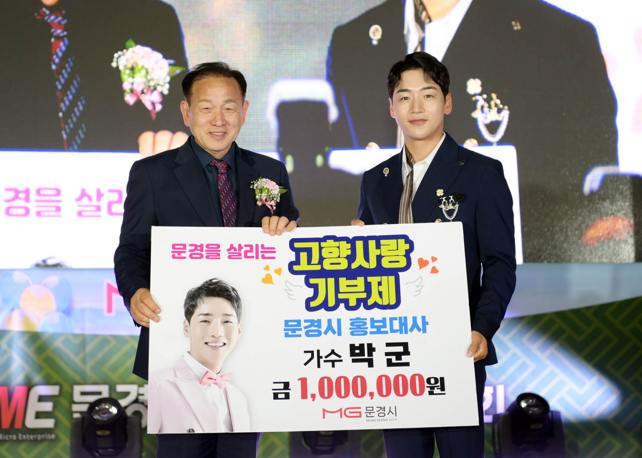 29일 문경시에 따르면 지난 26일 문경시 소상공인 페스타 개막식 행사에서 공연한 가수 박군이 고향사랑기부금 100만원을 기부했다.