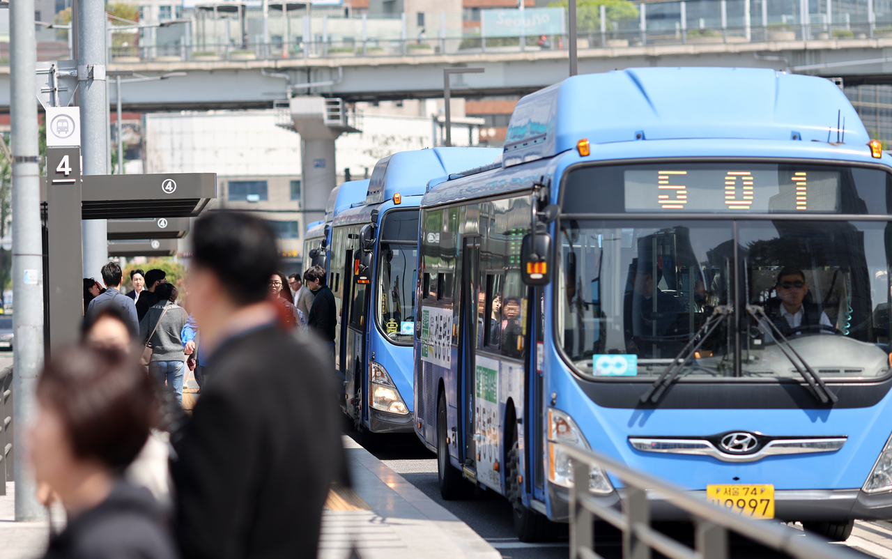 | 서울 시내버스 노조가 조합원을 대상으로 쟁의행위 찬반 투표를 진행하는 28일 서울역버스종합환승센터에 버스가 다니고 있다. 임금·단체협상(임단협) 노사 협상이 법정 조정기한인 오는 29일까지 타결되지 않으면 노조는 30일 첫차부터 쟁의행위에 돌입할 것으로 예상된다. 파업에 나설 경우 2년 연속이다. [연합] |