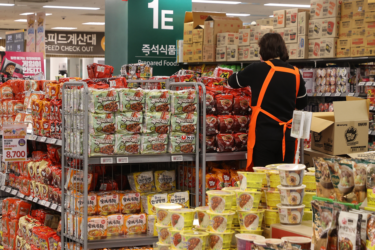 | 식품·외식업계에서 제품과 메뉴 가격 인상이 이어지면서 장바구니 물가 부담이 커지고 있다. 2일 서울 시내 대형마트에서 시민들이 장을 보고 있다. [연합] |
