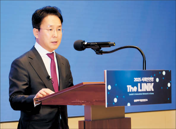 | 29일 서울 서초구 삼성금융캠퍼스에서 열린 ‘사회안전망 The LINK’ 행사에서 이문화 삼성화재 사장이 환영사를 하고 있다. [삼성화재 제공] |