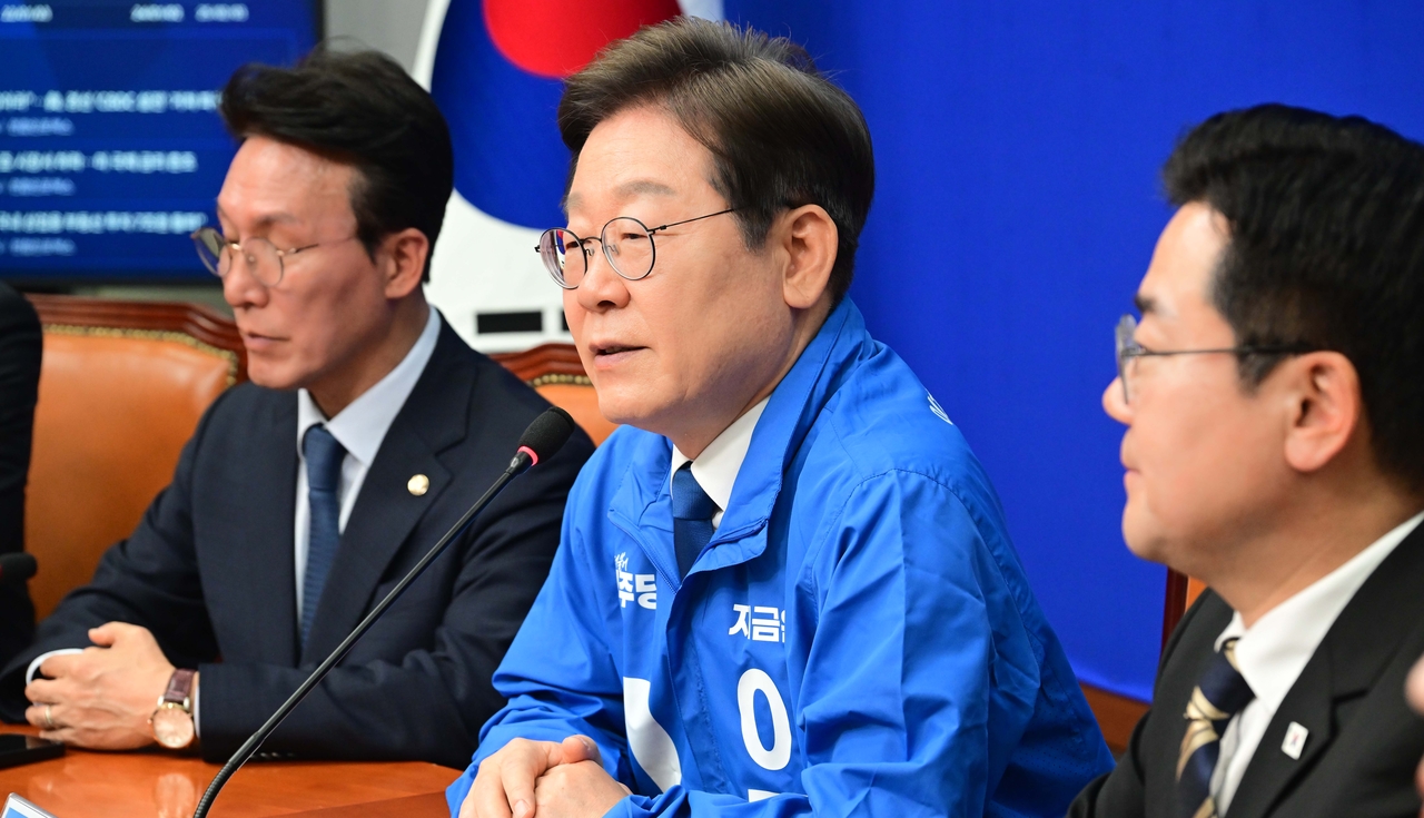 | 이재명 더불어민주당 대선 후보가 지난 28일 서울 여의도 국회에서 열린 최고위원회의에서 발언하고 있다. 이상섭 기자 |