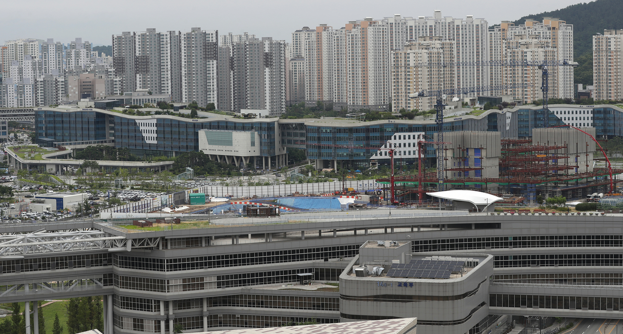 | 정부세종청사 측에서 바라본 세종시 아파트 전경. [뉴시스] |