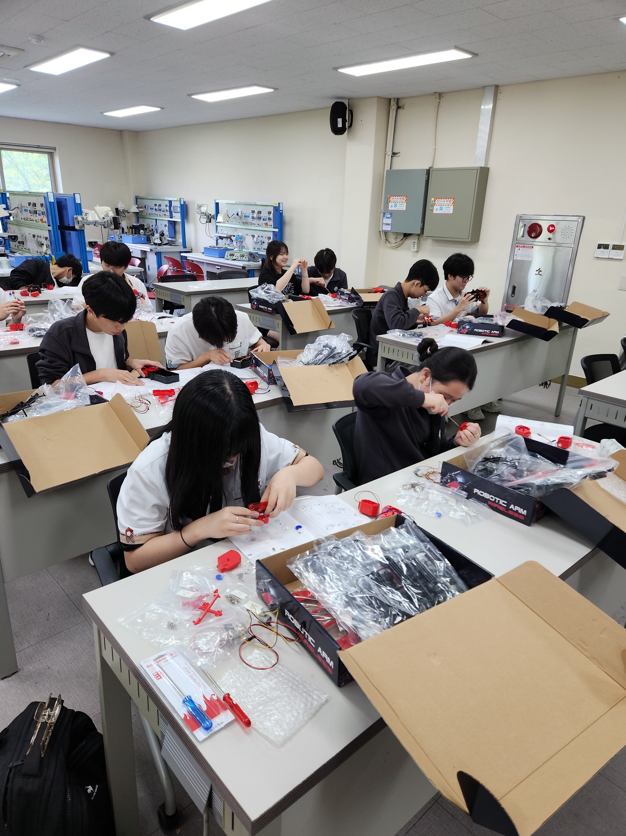| 한국폴리텍대학에서 보유하고 있는 시설·장비를 연중 개방해 국민 모두를 대상으로 무료 기술교육 및 체험학습을 지원하는 ‘꿈드림 공작소’에서 학생들이 체험 중이다. [한국폴리텍대학 제공] |