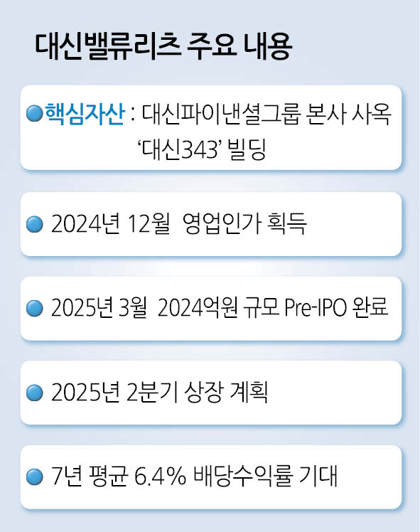 본사사옥 ‘대신343’ 빌딩을 핵심 자산으로 내세운 이 리츠에는 초대형 투자은행과 대형 보험사 등 다양한 기관투자자가 대거 참여했다. 기관들은 본사 건물의 높은 가치와 장기 임차계약에서 나오는 배당 안정성에 주목했다.