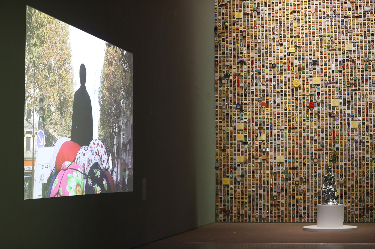 혼성 섹션에는 백남준, 강익중, 김수자, 서도호의 설치와 영상 작품이 마주보고 대화하는 방식으로 진열됐다. 그중 백남준이 1995년 독일 볼프스부르크 미술관 개인전에서 선보였던 ‘잡동사니벽’(1995)과 김수자의 ‘보따리 트럭-이민자들’(2007)은 미술관이 소장한 이후 처음으로 공개하는 작품이다. 13m에 이르는 벽면을 채운 가로, 세로 각 3인치(7.6㎝) 크기의 각기 다른 초소형 그림 8500여 점이 거대한 화면을 이루는 강익중의 ‘삼라만상’(1984-2014)은 그 자체로 무수한 의미의 교차점을 만들어낸다.