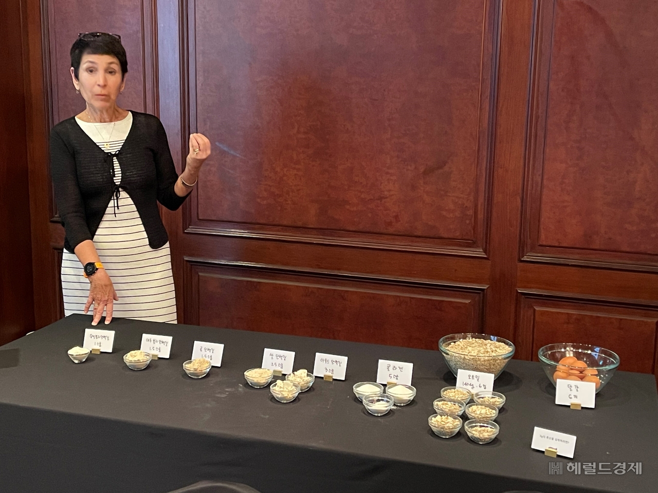| 근육 생성에 효과적인 류신은 단백질 종류 중 분리유청 단백질에 가장 많다. 사진은 레슬리 본시 미국 공인영양사. 육성연 기자 |
