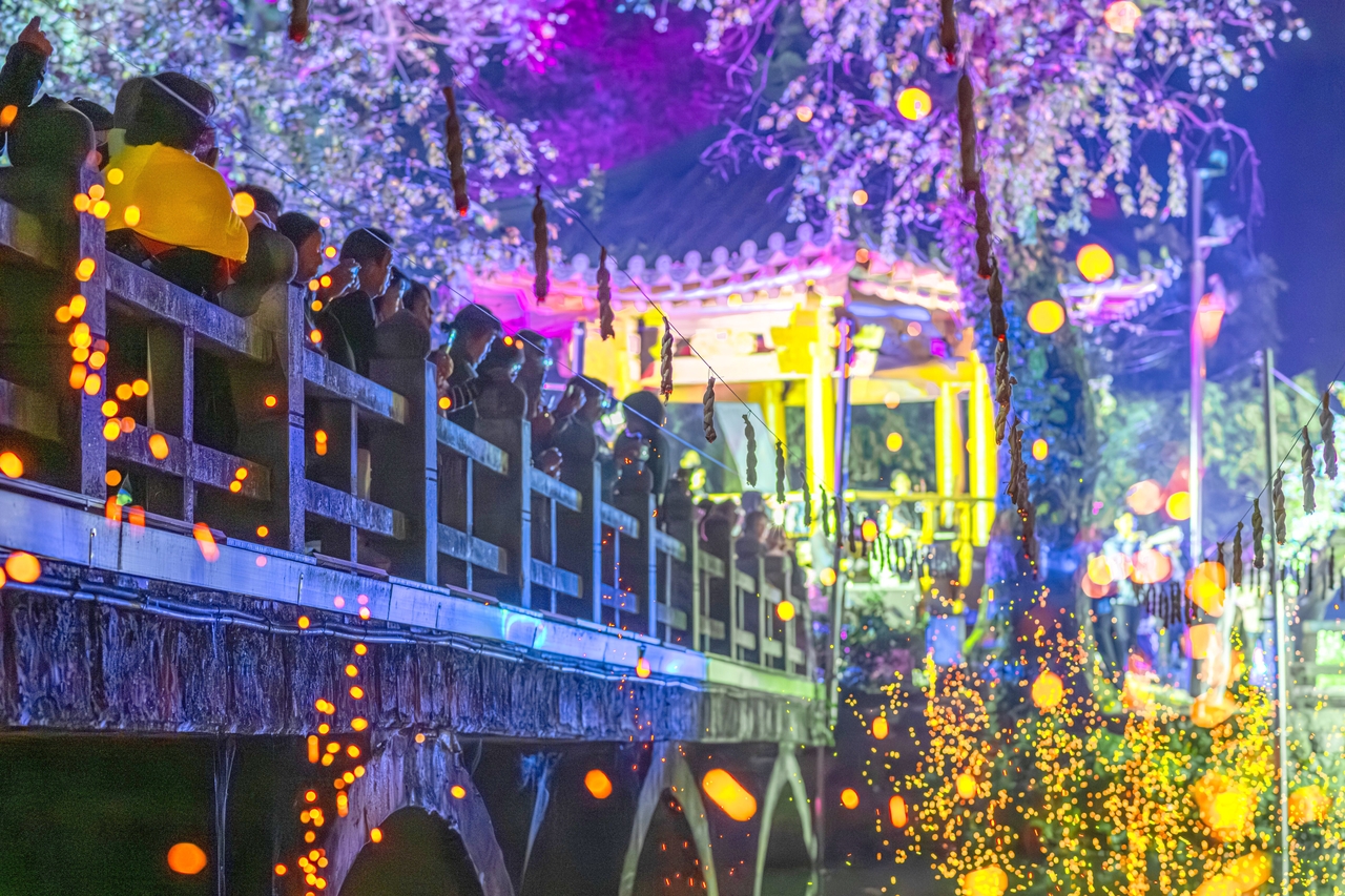 | 일본인 관광객들이 ‘조선의 불꽃놀이’ 낙화를 즐기고 있다. |