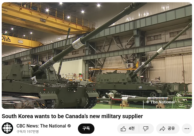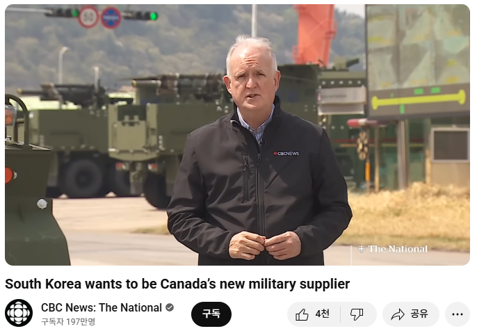 캐나다 최대 TV 방송인 CBC는 4일(현지시간) ‘한국, 캐나다의 새로운 군수품 공급국이 되길 원한다’는 제목의 기사에서 한국의 주요 방산기업 현장 취재를 통해 자주포와 잠수함 등 한국산 무기 도입 가능성을 타진했다.
