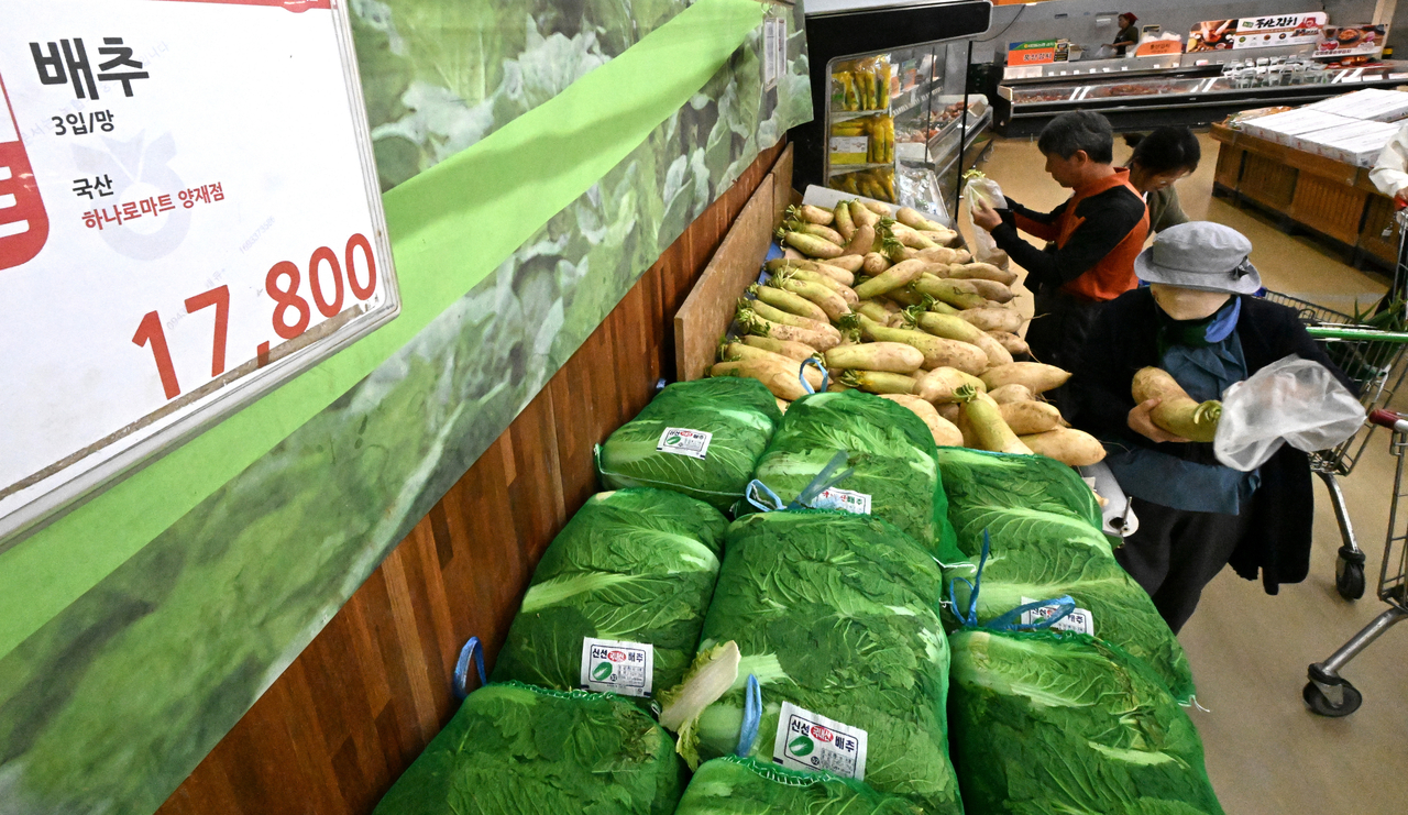 | 서울 서초구 하나로마트 양재점에서 시민들이 김장용 배추와 무를 살펴보고 있다.[헤럴드경제DB] |