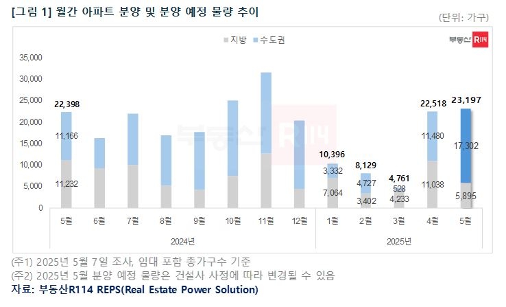 | 월간 아파트 분양 및 분양 예정 물량 추이. [부동산R 114 제공] |